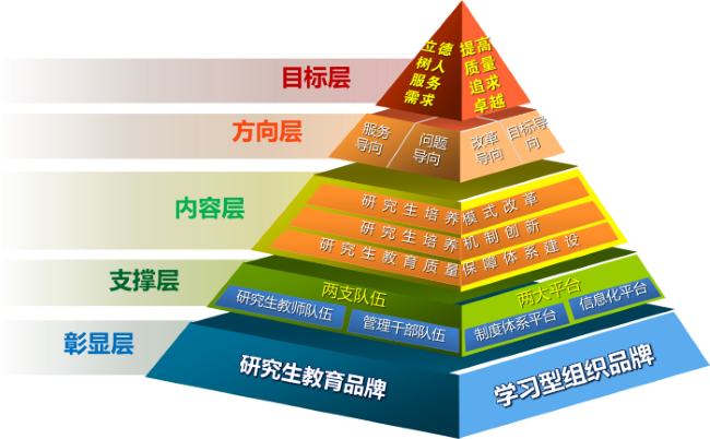 学校研究生教育秉承“卓越教育、卓越人才、卓越人生”的卓越教育理念,坚持“立德树人、服务需求、提高质量、追求卓越”一条主线,把握研究生培养模式改革、研究生培养机制创新和研究生教育质量保障体系建设三大着力点,围绕卓越人才所应具备的知识结构、创新能力、整体素养三类核心素质,聚焦研究生教育的招生、培养、学位、管理四个关键环节,构建以高水平导师队伍建设强化一流师资支撑、以学习型组织建设推进高素质管理队伍支撑、以教育管理创新打造制度规范支撑、以驾驶舱和教育信息系统建设赋能高效信息化支撑的卓越研究生教育支撑体系,通过实施人才培养一体化改革、产教融合与科教融汇研究生培养模式改革、研究生培养机制改革、研究生指导形式改革等重点改革任务,全面推进学校研究生教育内涵式、高质量发展。